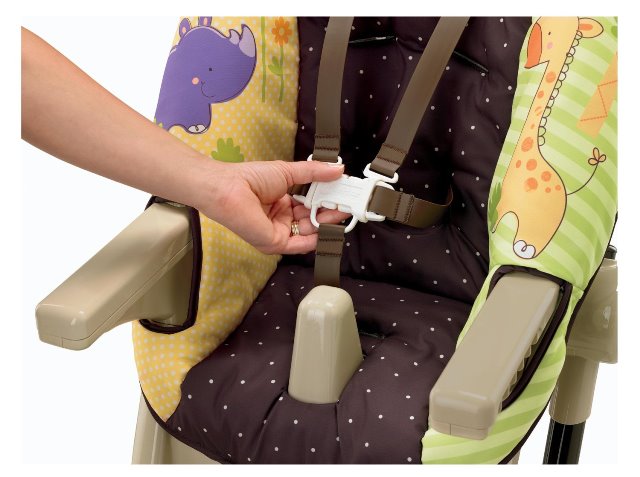 A compact chair can be easily folded in two ways, perfect for a small kitchen. Adjustable 5-point belts and anti-slip foot pads provide safety. The soft artificial leather seat is easy to wipe with a damp sponge.7 height modes, 3 footrest positions and 5 backrest angles make the chair comfortable for a child of any complexion. The table can be fixed in two positions or removed.