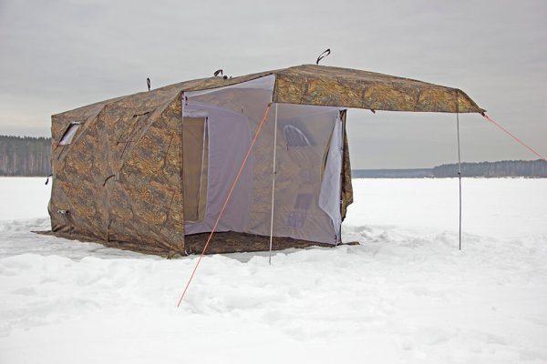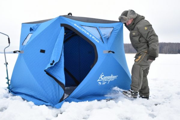 - Tramp Ice fisher 180 is a premium model. Two-layer polyester protects against wind and frost. Size allows you to comfortably accommodate 2 or 3 fishermen. It costs 14,000 rubles.