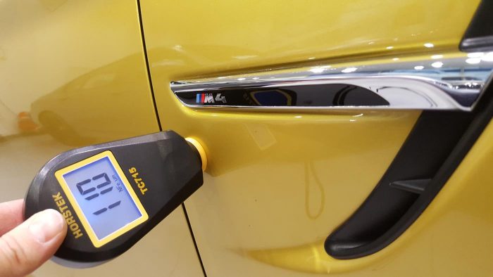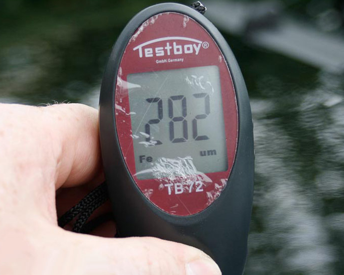The device is not difficult to use. To understand what thickness the coating is applied to the base, you should attach the device with the right side to the car body.