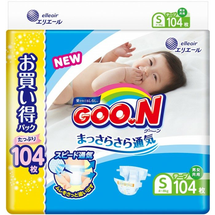 Goo.N diapers 3S (1.8-3 kg), NB (up to 5 kg), S (4-6 kg), M (6-11 kg); panties S (4-9 kg) M (6-11 kg)