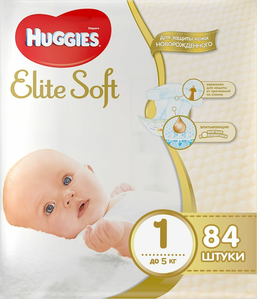 - Huggies Elite Soft 0 (up to 3.5 kg), 1 (up to 5 kg), 2 (4-6 kg)