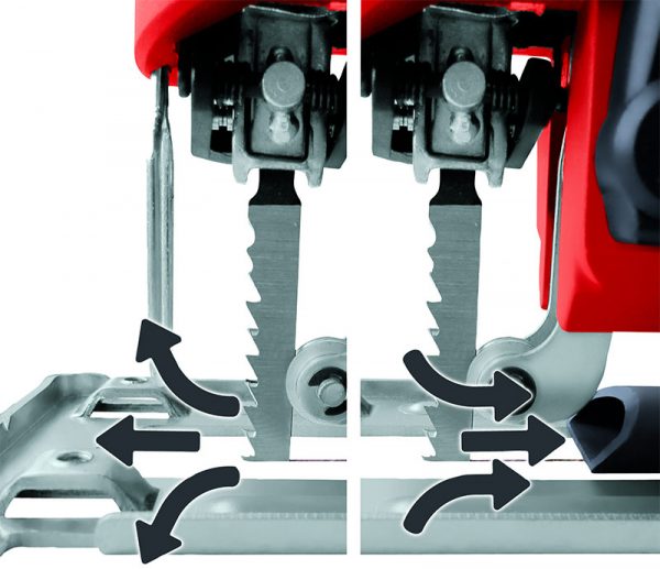 This is an option that is available in almost all modern models. The principle of operation of this option is such that the jigsaw file begins to move not only up and down, but also back and forth. It is convenient if this function can be disabled in your jigsaw model. The fact is that it is better to use it for rough work, as it reduces time and increases intensity. Please note that the quality of cut has dropped, which is completely unacceptable when working with decorative materials.