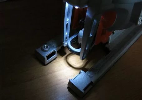 - Backlight. The presence of an LED flashlight facilitates operation even in poor general lighting. The flashlight will highlight the cut-off line that you previously placed on the surface of the workpiece.