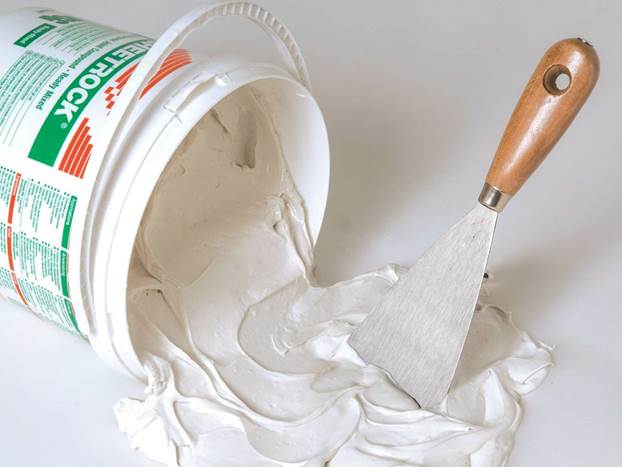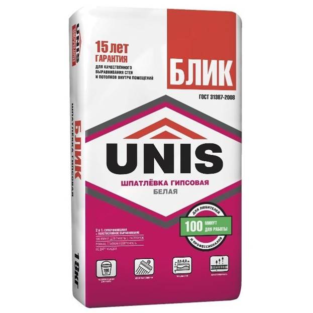 These are more versatile and practical mixtures used for internal work. This is a good plasterboard putty, which is also suitable for cement and concrete surfaces. If you pay attention to the name, it will become clear that the main component of the mixture is gypsum. Additionally, mineral plasticizing agents and polymer additives are added, which is necessary to improve the characteristics of the hardened base.