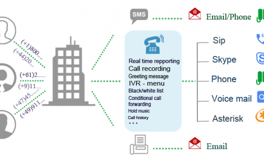 - You acquire a virtual number of a certain type and set up call forwarding to other equipment (for example, to employees' smartphones).