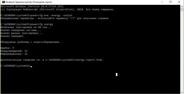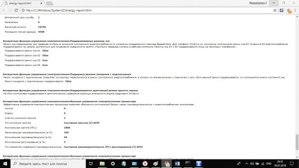 - il rapporto generato verrà inserito in una cartella sulla partizione di sistema del disco rigido nel seguente percorso: "C: \ Windows \ System32 \ energy-report.htm";