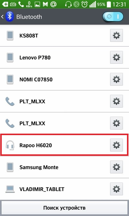 Se sei diventato il proprietario di uno smartphone di Microsoft, allora è ancora più facile. Attiviamo anche il Bluetooth e aspettiamo la fine della ricerca. Quindi seleziona le nostre cuffie e premi il pulsante maglia.
