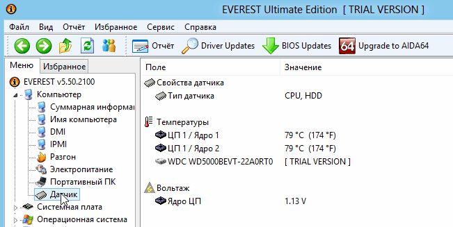Dopo averlo installato e avviato, è necessario accedere alla sezione "Computer / Sensore", che contiene i dati sulla temperatura del processore e del disco rigido.Questi indicatori, sebbene indirettamente, indicano il regime di temperatura del dispositivo.