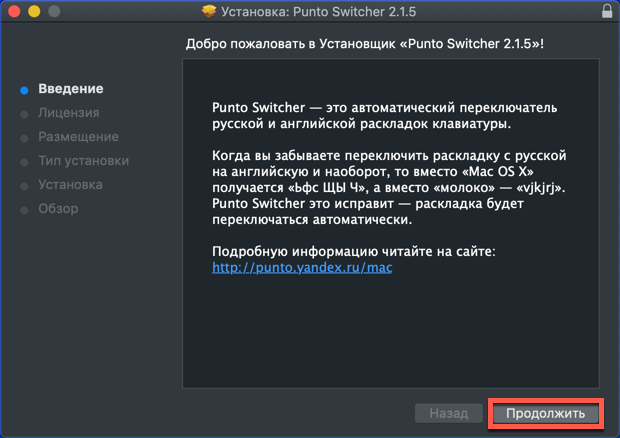 - Puoi scaricare l'ultima versione di Punto Switcher da installare su Mac dai server di Yandex, proprietario del programma. È distribuito sotto forma di un archivio contenente un programma di installazione offline in formato PKG.