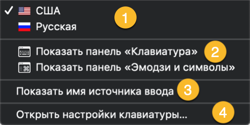 Al primo avvio di un nuovo Mac, il sistema determina la posizione geografica e sulla base si offre di scegliere una lingua di interfaccia. L'inglese, come internazionale, è installato di default. La presenza di due language pack ti consente di iniziare subito. È possibile cambiare la lingua di input dalla barra dei menu in alto o usando le scorciatoie da tastiera. Di seguito consideriamo entrambe queste opzioni in modo più dettagliato.