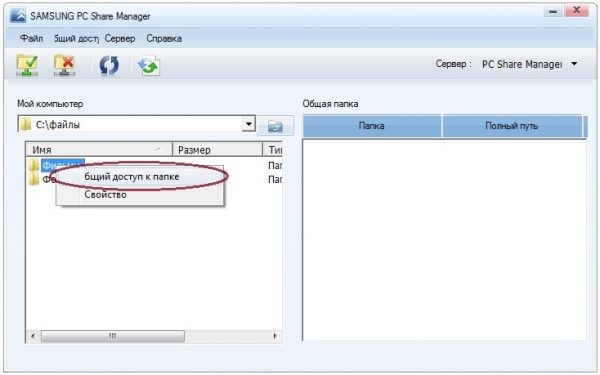 - trascinare e rilasciare le cartelle nel riquadro destro della finestra, un altro metodo: fare clic con il tasto destro su una cartella e selezionare “Condividi questa cartella”;