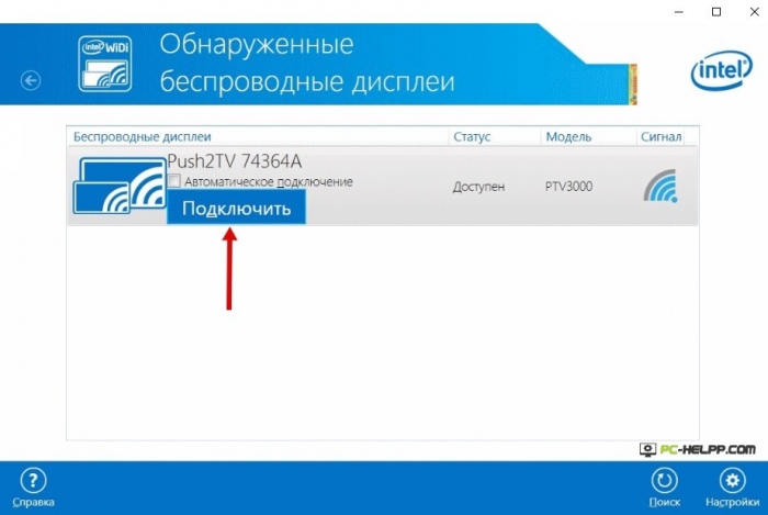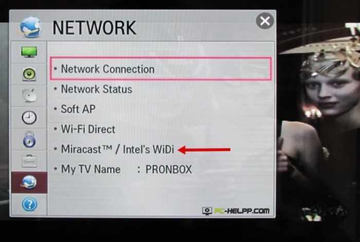 - Durante la connessione, è necessario attivare WiDi sulla TV. Se non riesci a trovare questa funzione, devi attivare la connessione Wi-Fi. In un laptop è necessario disporre dell'utilità Intel Vayles Display, progettata per un monitor wireless.