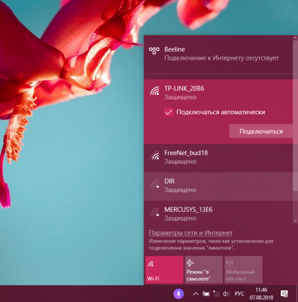 - Fare clic sul segno "Accesso alla rete Internet". Nell'elenco è necessario selezionare una rete e aprirla facendo clic sul pulsante sinistro. Impostare la casella di controllo accanto a "Connetti in modalità automatica" e fare clic su "Connetti". Se richiesto, inserire una password.