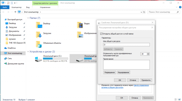 - Nella finestra visualizzata, seleziona la casella a sinistra di "Consenti condivisione questa cartella". Quindi fare clic su "Applica" e quindi su "OK".