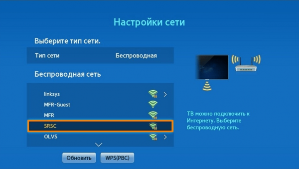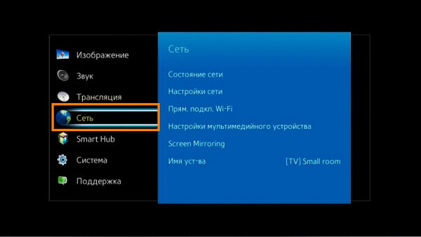 - Vai alla connessione sulla TV. Considera l'esempio di Samsung. È necessario avviare la TV e utilizzare il telecomando per accedere al menu. Trova il blocco "Rete". Nell'elenco a destra, selezionare "Impostazioni di rete".