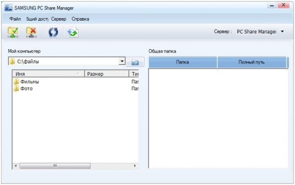 - L'applicazione ti chiederà di visualizzare cartelle specifiche. Per impostazione predefinita, si tratta di "Video", "Musica", "Immagini". Tuttavia, è anche possibile specificare altre cartelle in cui sono memorizzati i filmati o le foto in modo che in seguito possano essere guardati su uno schermo TV. È necessario fare clic sul pulsante destro "Aggiungi" con un segno più verde.