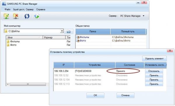 - verrà visualizzato un elenco con i dispositivi disponibili nella parte superiore della finestra principale, è necessario selezionare quelli desiderati facendo clic su "Accetta" e quindi su "OK";
