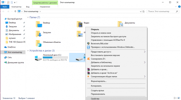- Accedi a Esplora risorse tramite l'icona Questo computer sul desktop. Premere l'HDD con il tasto destro e fare clic su "Proprietà" nel menu a comparsa.