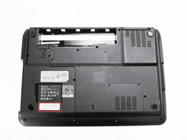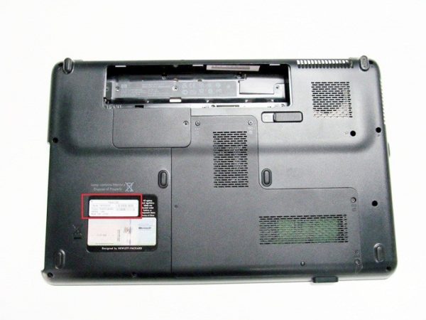 Se non è stato possibile determinare la modifica in questo modo, ispezionano la parte inferiore del computer, dove è possibile trovare informazioni complete sul dispositivo. In assenza di adesivi o della loro totale inadeguatezza, guardare nel vano batterie.