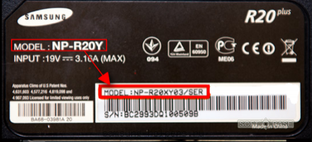 Sui computer del produttore, uno dei numeri di modello più confusi e complessi. Ad esempio, minuscolo trovato come Sony Vaio. Tuttavia, questo non è un identificatore esatto utilizzato nei punti vendita. Fino al 2013, le informazioni si trovavano sul corpo dello schermo, come in HP (nell'angolo in basso a destra o in alto). Il segno è piccolo, ma puoi trovarlo. Un esempio è nella foto qui sotto.