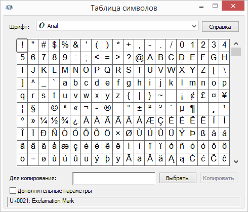 Utilizzo della tabella dei simboli di Windows