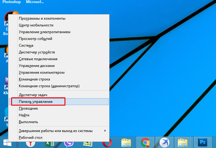 - facendo clic su "Avvia" con il pulsante del mouse, è necessario selezionare "Pannello di controllo" nell'elenco a comparsa;