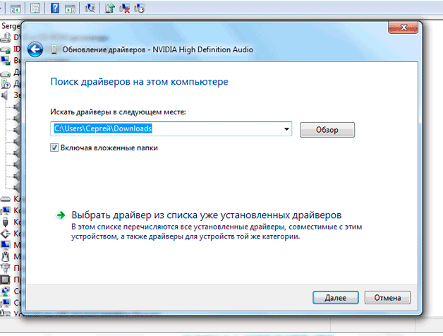- verrà visualizzato un elenco di dispositivi audio, è necessario contrassegnare il nome desiderato e applicare "Aggiorna driver" nella finestra pop-up;