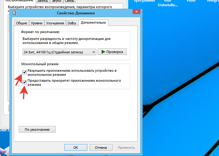 A volte anche dopo aver utilizzato i driver necessari dal sito Web ufficiale del produttore, il suono sul laptop scompare. Per comprendere un problema del genere, è necessario esaminare inizialmente la sezione appropriata "Regime di monopolio" ed esaminare se è stato concesso il permesso di utilizzarlo.