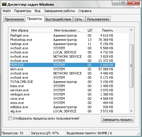 Si consiglia di studiare attentamente questa finestra, perché se visualizza vari programmi che l'utente non ha eseguito, si verifica un errore nel funzionamento del sistema del computer. Lo stesso vale per le situazioni in cui il computer è appena acceso, ma il carico è già del 90 percento. Esistono due opzioni: