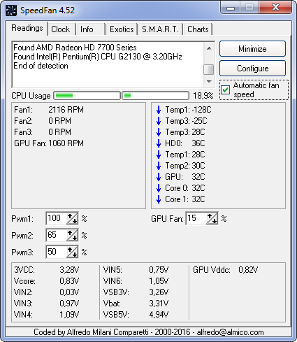 Questa operazione viene eseguita utilizzando le utilità appropriate. L'applicazione SpeedFan è adatta, che offre all'utente la possibilità di adattarsi completamente velocità della ventola. Si consiglia di ridurre gradualmente la velocità, con incrementi di 5, mantenendo i parametri dopo ogni passaggio e controllando il rumore della ventola.
