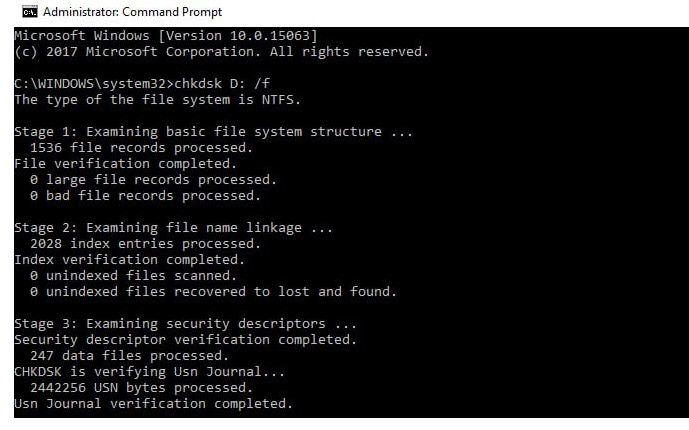 - Dopo chkdsk, viene indicata la sezione di verifica.