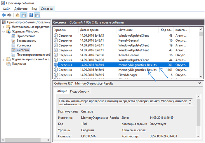 - Se il risultato del test non viene visualizzato, può essere visualizzato nei "Registri di Windows" nella sezione "Sistema".