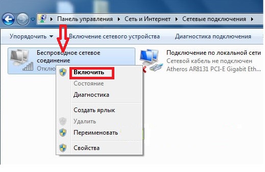 Facendo clic sull'iscrizione, selezionare la sezione "Abilita", avviare la rete.