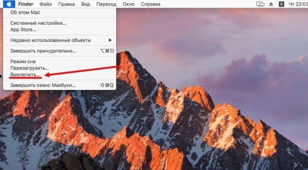Innanzitutto, controlla il Dock per le applicazioni aperte (ridotto a icona, ma i programmi di lavoro sono contrassegnati da punti sotto le icone corrispondenti). Nell'angolo in alto a sinistra del desktop, fai clic sull'icona "Apple". Nella scheda che si apre, fai clic sulla voce "Spegni ...", conferma l'azione, attendi che il laptop sia completamente spento.