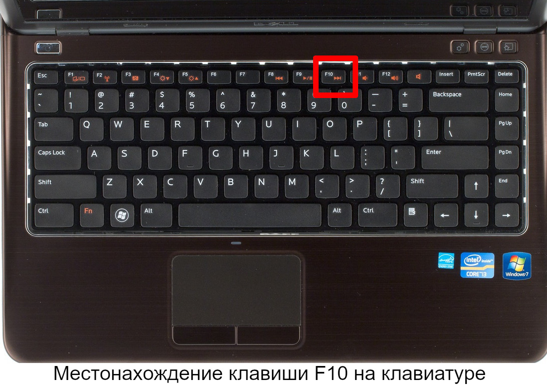 - Viene premuto il tasto F10 e, senza rilasciarlo, il pulsante di accensione. Ci sono casi in cui puoi entrare nel bios molto spesso premendo F10 dopo aver avviato il computer portatile.