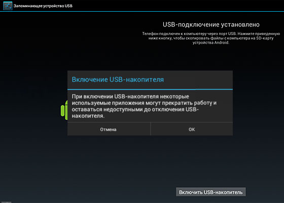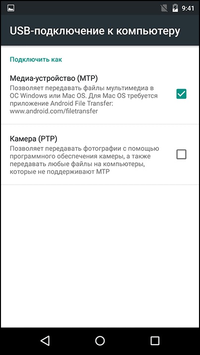 - Sui dispositivi Android meno recenti, è necessario selezionare una modalità speciale per la connessione a un PC. In genere, sul tablet viene visualizzato un messaggio di connessione. In caso contrario, scollegare l'apparecchiatura dal PC e verificare la disponibilità di tale elemento nelle impostazioni.