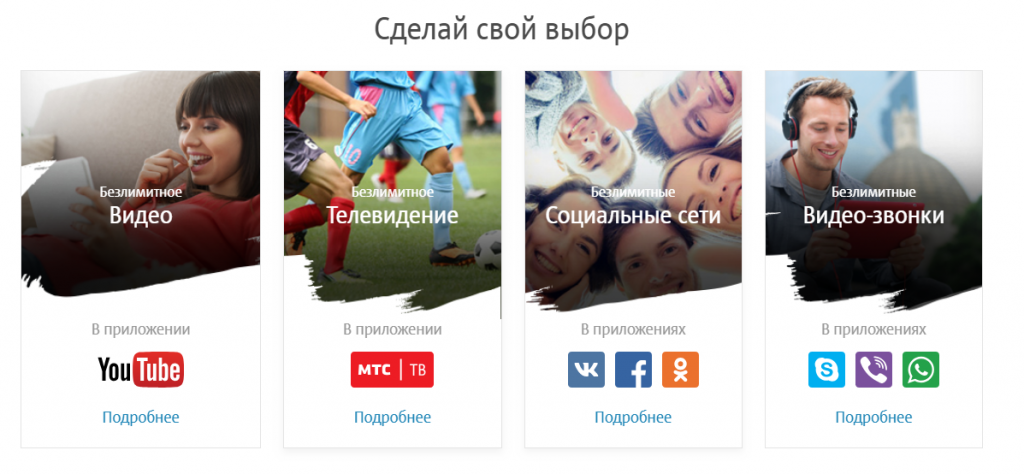 - Un'opzione gratuita per scegliere tra le seguenti offerte: abbonamento a MTS TV, social illimitato. reti, videochiamate gratuite, accesso illimitato per utilizzare il servizio online Youtube.