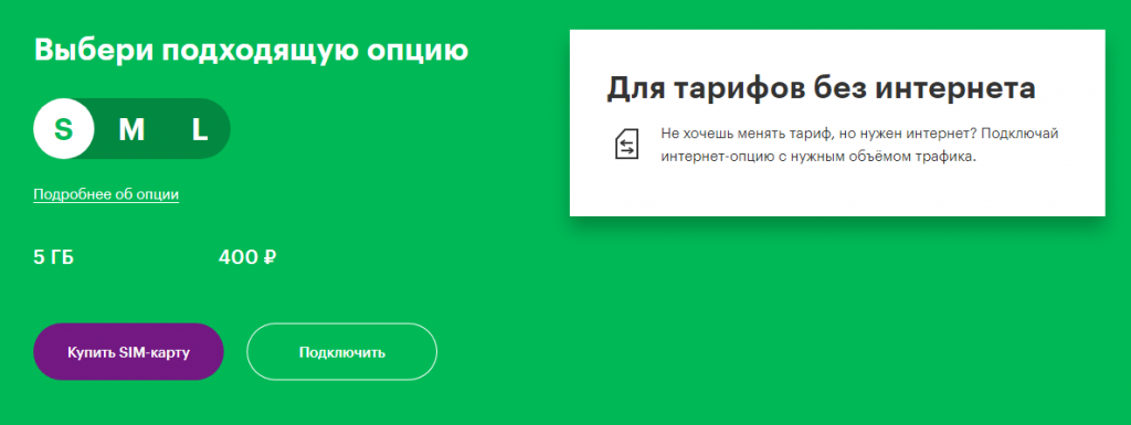 - un pacchetto con traffico nella quantità di - 10 GB per un mese (valido in tutta la Russia);