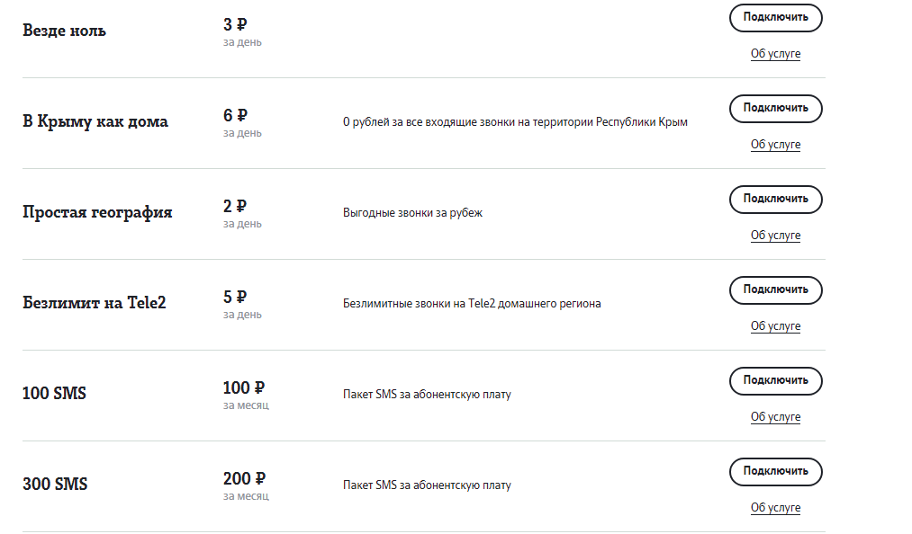L'operatore presentato ha un piano tariffario "Internet per dispositivi". Su di esso è possibile connettere il servizio aggiuntivo "Internet to Tablet". Quando è connesso, l'abbonato ha le seguenti opzioni: