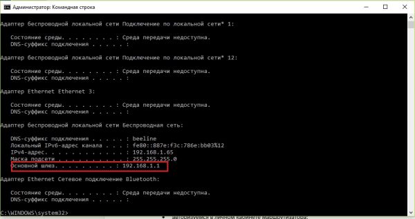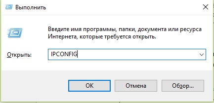 - Apriamo il browser e inseriamo l'indirizzo IP locale del router nella barra degli indirizzi. Se per qualche motivo l'IP non è noto, eseguiamo i seguenti passaggi: apri l'utilità Esegui premendo i tasti WIN + R e inserisci "IPCONFIG" nella riga vuota. Nella voce "Gateway principale" verrà visualizzato l'indirizzo locale.
