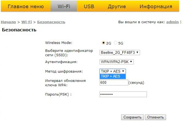 Se il dispositivo non è in grado di connettersi a Internet tramite WLAN, ma la rete viene salvata, possiamo affermare con certezza che il problema risiede nei diversi metodi di crittografia. È necessario configurare questo parametro.