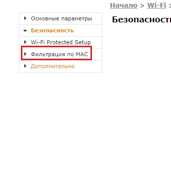 - quindi vai su "Impostazioni" e seleziona la scheda "Filtra per MAC" o "Rete";