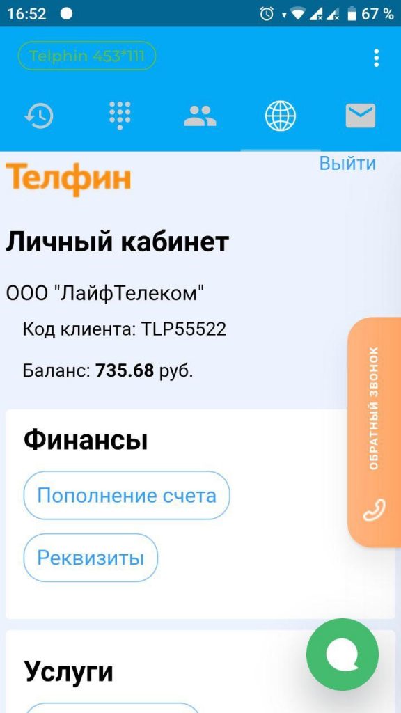 Sul sito Web della società Telfin è possibile installare questa applicazione mobile e collegare la telefonia SIP.