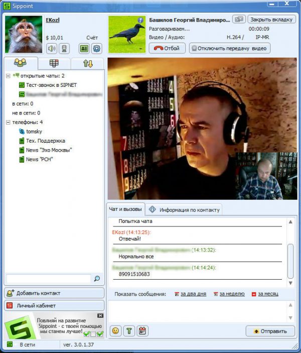L'applicazione ha una finestra principale, in cui i contatti vengono posizionati sul lato sinistro dello schermo e una chiamata viene gestita sul lato destro. I pulsanti sul pannello di controllo consentono di registrare una conversazione, abilitare o disabilitare il microfono, mettere in attesa la chiamata. Sfortunatamente, la possibilità di una videochiamata nella versione gratuita è bloccata. Per utilizzare la funzione e accedere a ancora più impostazioni client, è necessario acquistare una versione PRO.