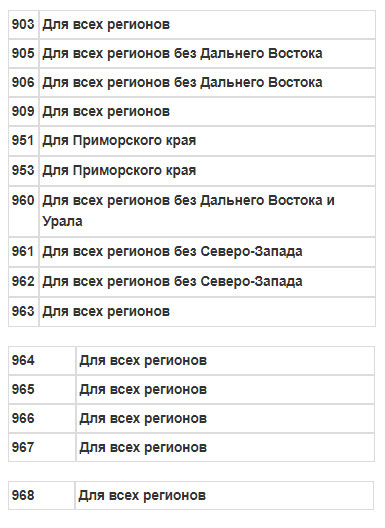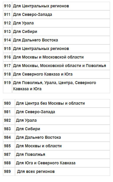 Tele2 è stato riconosciuto come il più giovane fornitore di servizi di rete, ma si è già affermato nel mercato dei servizi di telecomunicazione. Possiede i codici: 900, 901, 908, 950, 951, 952, 953 e così via. Inoltre, la regione può essere identificata da prefissi. Ad esempio, 900 si riferisce a qualsiasi città e 904 alle regioni di Lipetsk, Kemerovo e Irkutsk.