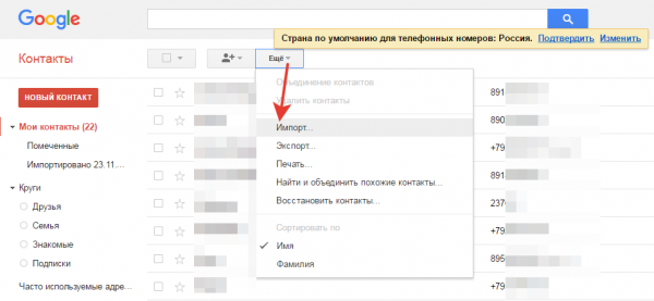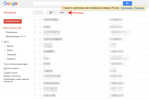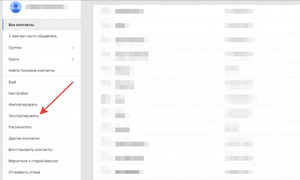 - Immettere i contatti, nell'angolo in alto, fare clic su "gestione" e dal menu a discesa selezionare l'opzione di importazione / esportazione. I dettagli sono visibili su uno screenshot.