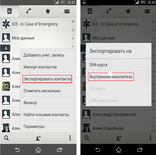 - Quindi utilizzando il file manager ("File commander") trasferire i contatti sul secondo telefono in qualsiasi modo.