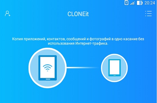 Questo è un programma della stessa azienda, ma con caratteristiche leggermente diverse. Viene utilizzato se è necessario trasferire gruppi di file specifici come SMS e MMS, registro chiamate, calendario, programmi stessi e dati del programma, impostazioni di sistema, account e password su WI-FI, e-mail, segnalibri nel browser Chrome, ovvero ciò che riguarda direttamente il sistema operativo e le applicazioni installate. CLONEit consente inoltre di eseguire il backup dell'intero sistema.
