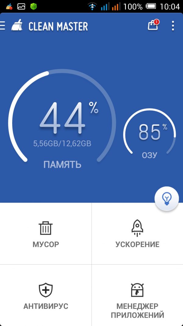 - "Clean Master." L'applicazione consente di eliminare rapidamente file non necessari. È necessario scaricare il software e installarlo. Dopo aver avviato la schermata principale, selezionare "Avvia". Apriamo la sezione "Gestione applicazioni" e contrassegniamo quelle applicazioni che devono essere rimosse.
