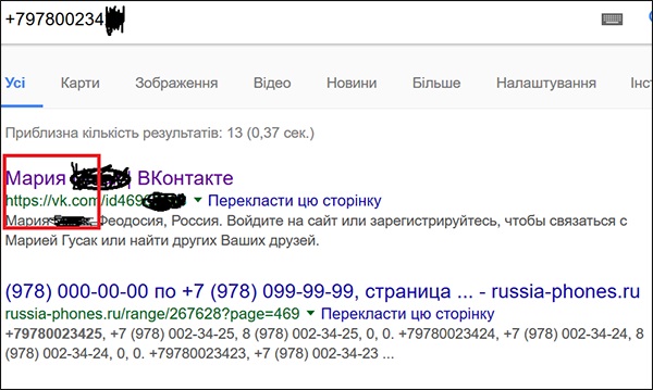 Spesso ci registriamo sui social network e altri portali di informazioni. E spesso scriviamo in essi i nostri numeri, città, nome e altre informazioni personali. La prima opzione per punzonare il numero di qualsiasi cellulare è collegata a questo. Se inserisci il numero in un browser Internet (Yandex o Google), è piccolo, ma c'è ancora la possibilità che troverai le informazioni. Questo metodo è uno dei più inefficienti, ma funziona ancora e il più semplice.